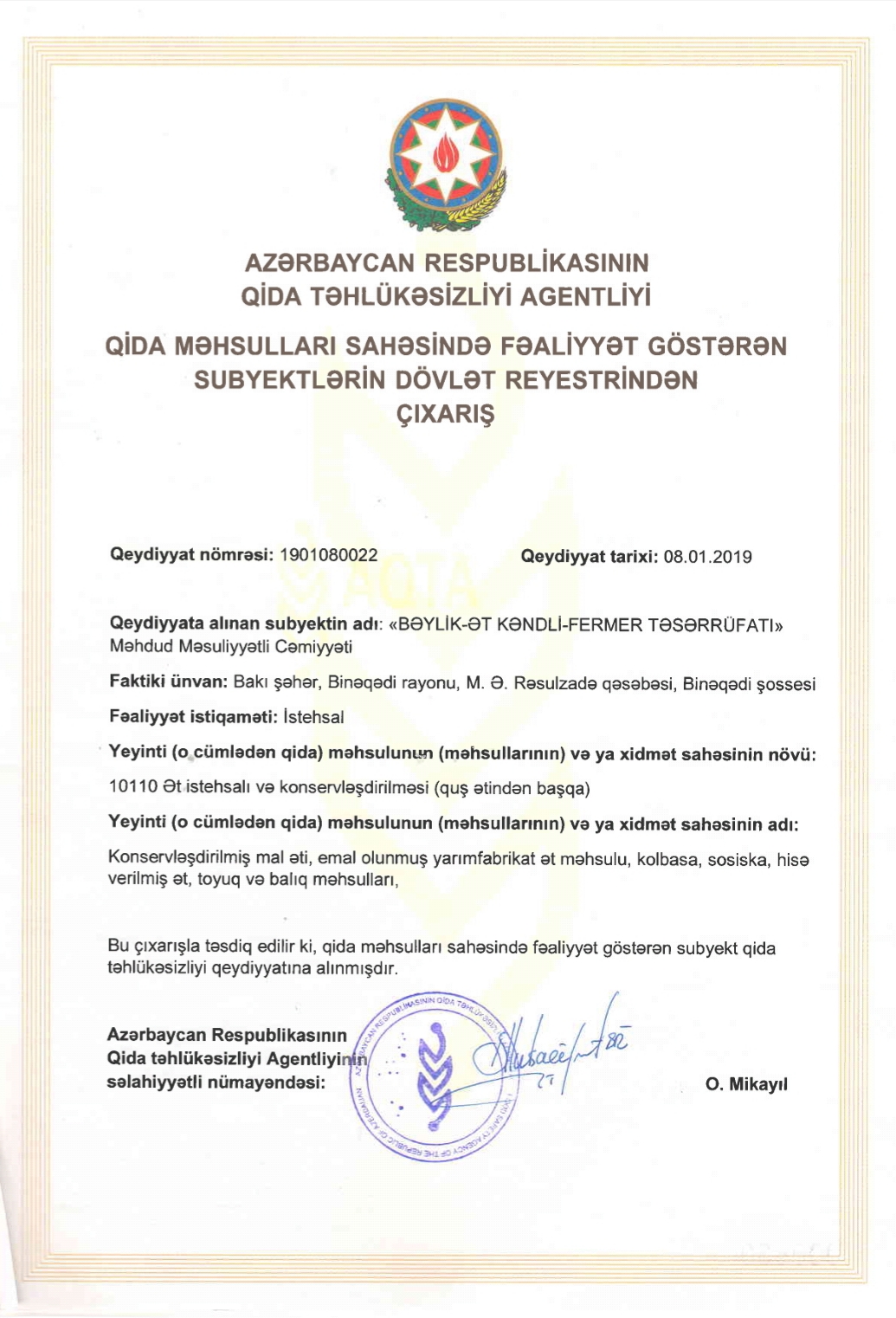 ООО «Бейлик Мясная Крестьянская Ферма» было создано 29.09.2016. Сфера деятельности ООО - производство и реализация колбас, консервов и деликатесов. Наше видение заключается в том, чтобы продолжать расти, предлагать здоровые, высококачественные и надежные мясные продукты от ферм до вашего стола, сохраняя при этом условия безопасности пищевых продуктов. Это должно быть жемчужиной вашего стола с уникальным вкусом. Это наша первая политика компании - предоставлять нашим клиентам лучшее, вкладывая средства в необходимые технологии для создания современного производственного участка. Оставаясь верными нашей миссии, мы обещаем предоставить нашим потребителям вкусные продукты, которые вас никогда не удовлетворят, и что мы поставим здоровье и ценности человека превыше всего. Наша цель - стать одной из ведущих компаний в отрасли, внедряющей инновации в нашей области, как для наших клиентов, так и для сотрудников. Мы поддерживаем каждый продукт, который производим.